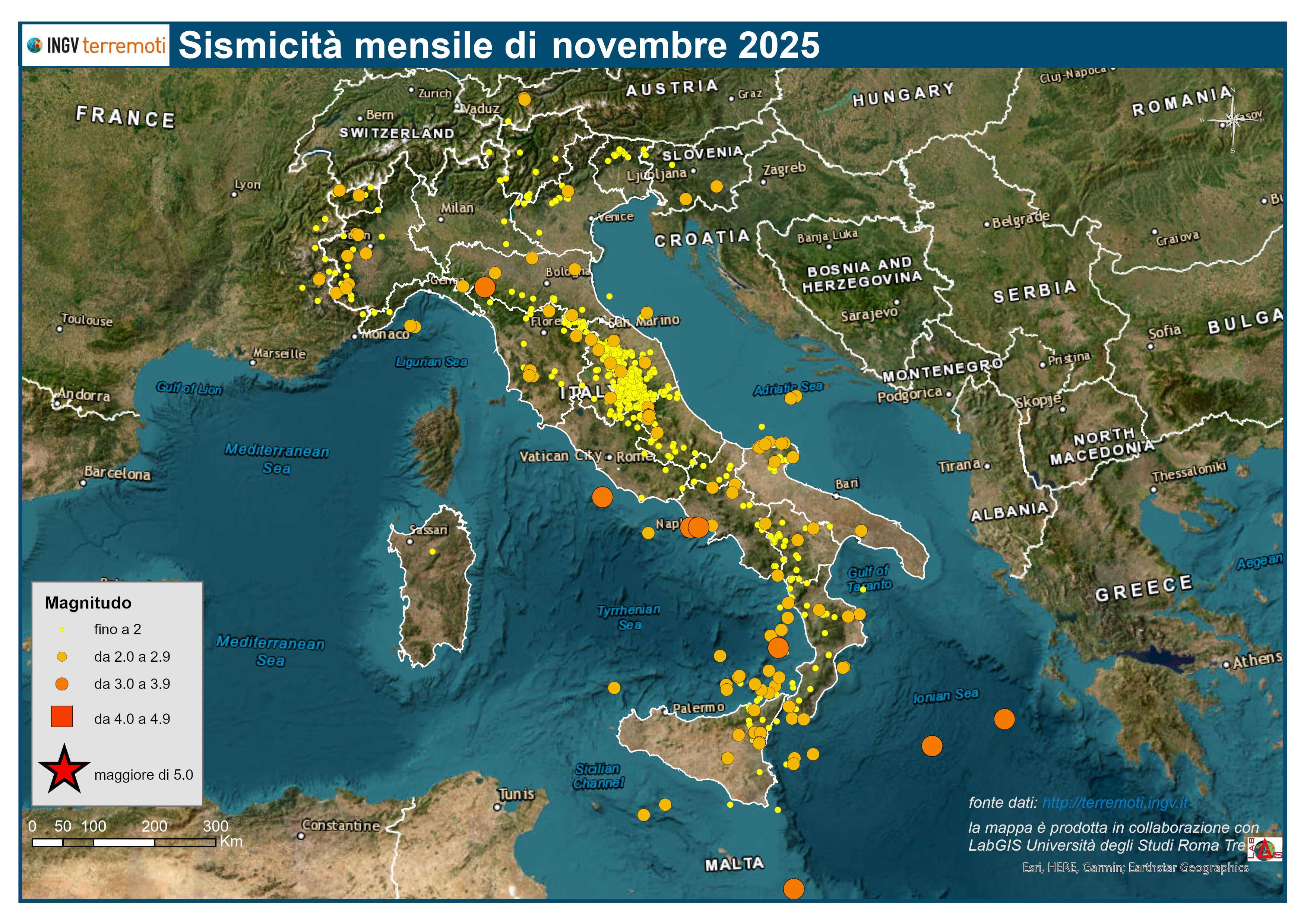 Le mappe mensili della sismicità, novembre 2025