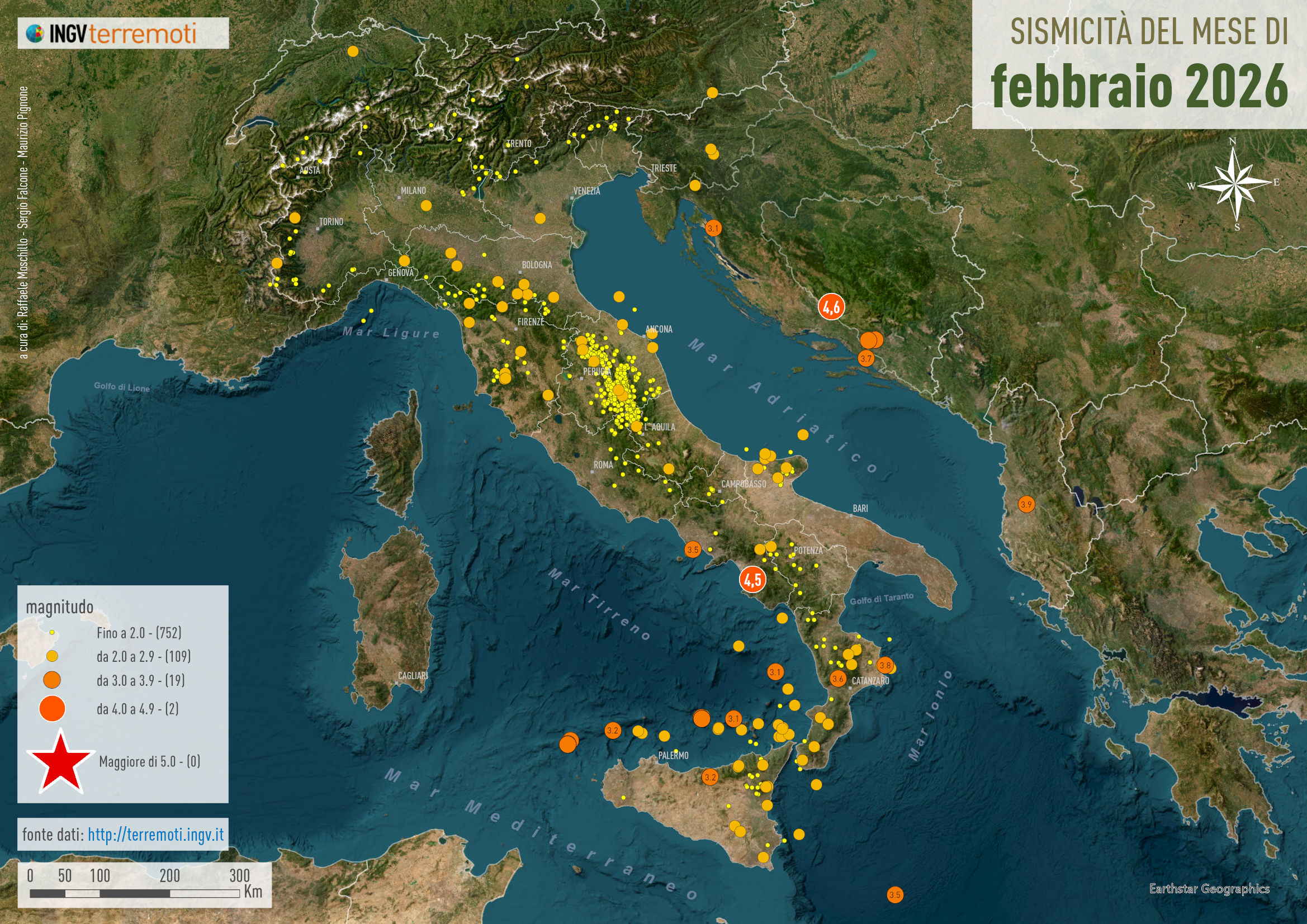 Le mappe mensili della sismicità, febbraio 2026